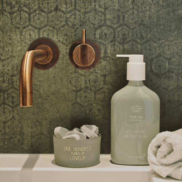 De grote flessen van 350 ml staan super gaaf bij de gootsteen en zijn een echte eye catcher. Deze vegan handzeep is heerlijk zacht voor je handen door de toevoeging van aloë vera. Uiteraard is deze handzeep niet op dieren getest. Dat geeft wel zo’n fijn gevoel.